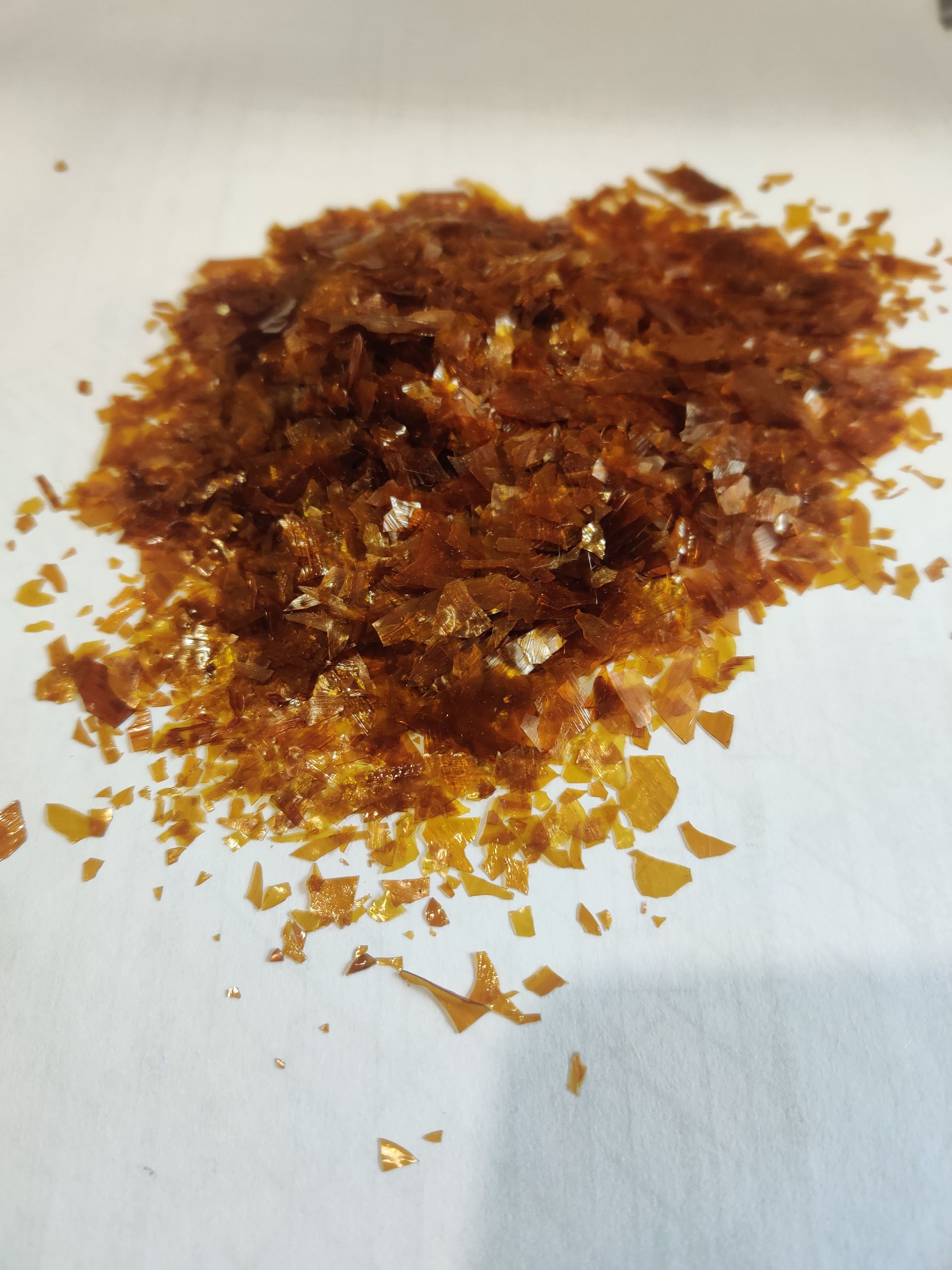 Пластинки (чешуйки) от светло-коричневого до коричневого цвета без видимых посторонних примесей. Скомкованности не обнаруживается.